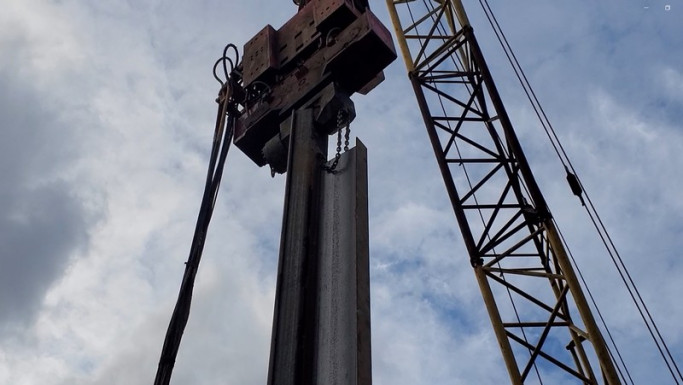 Извлечение шпунтовых ограждений при строительстве спортивного комплекса.